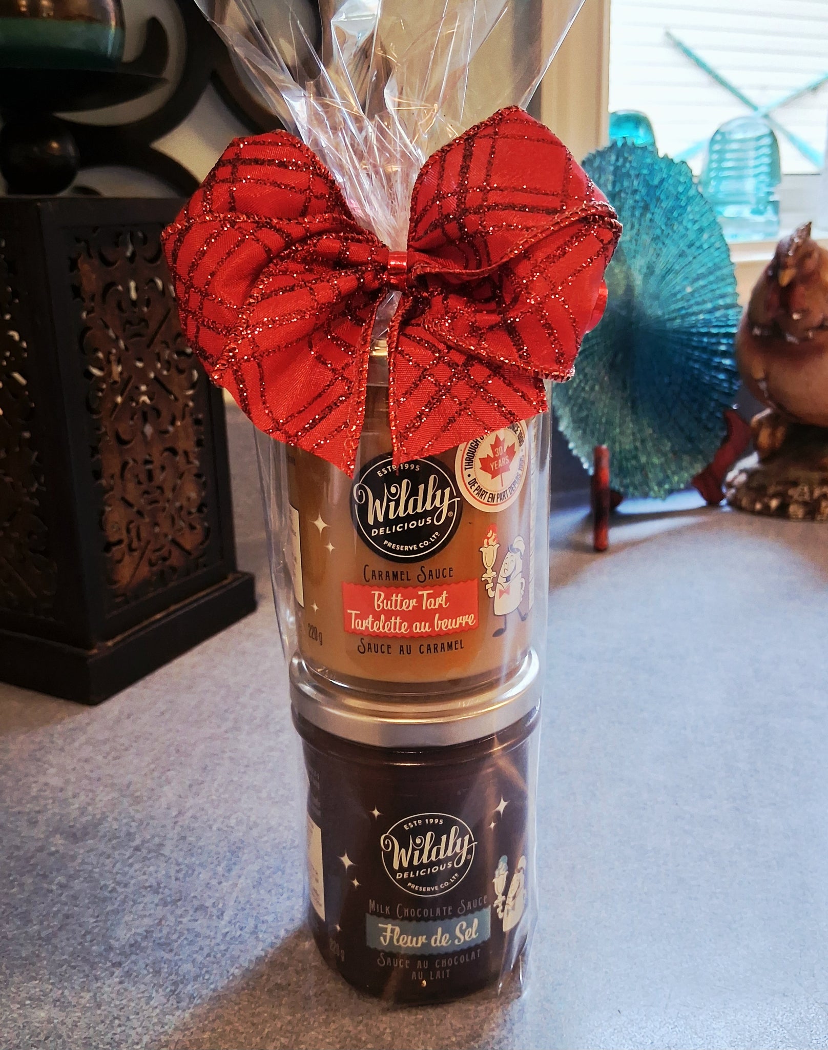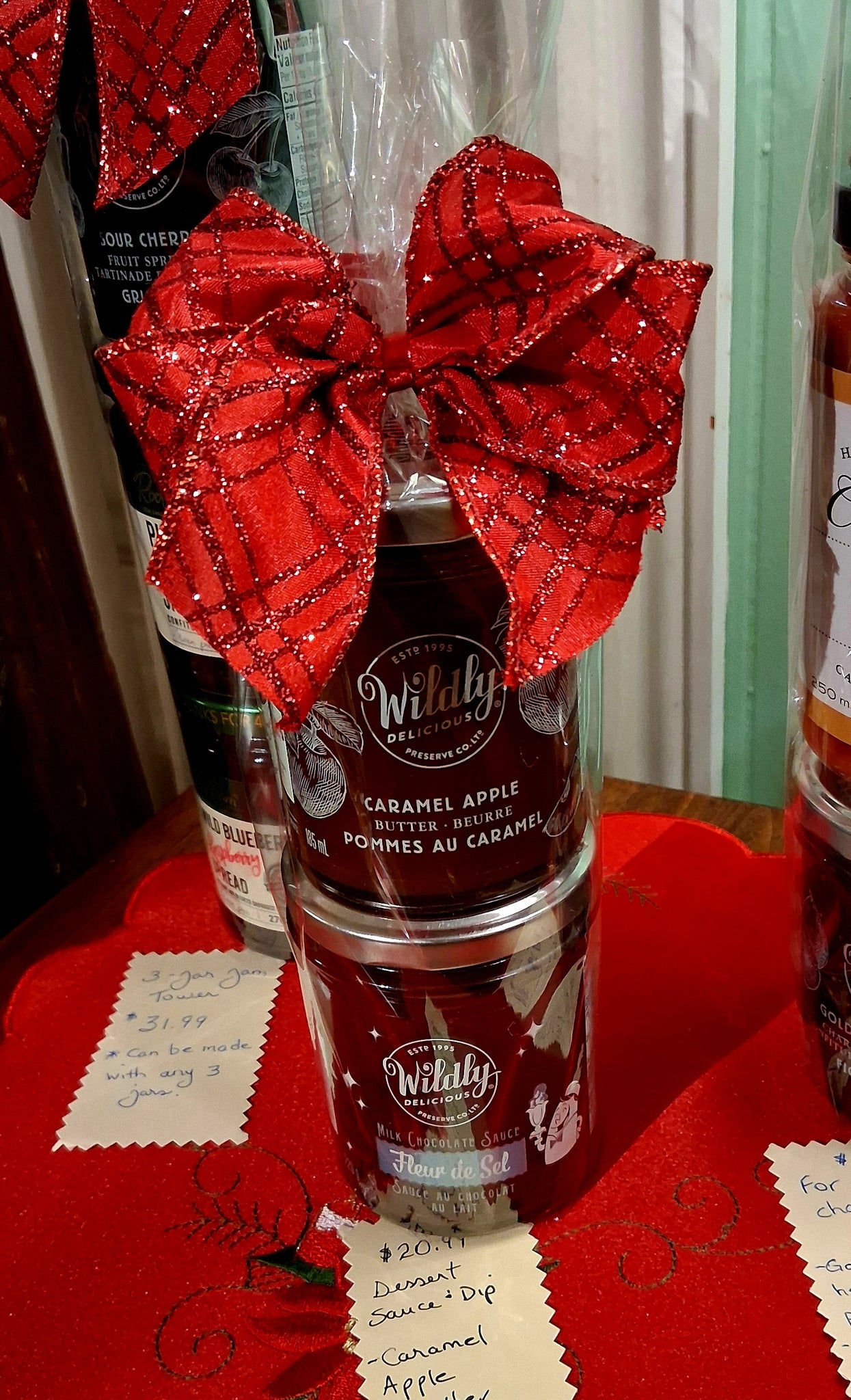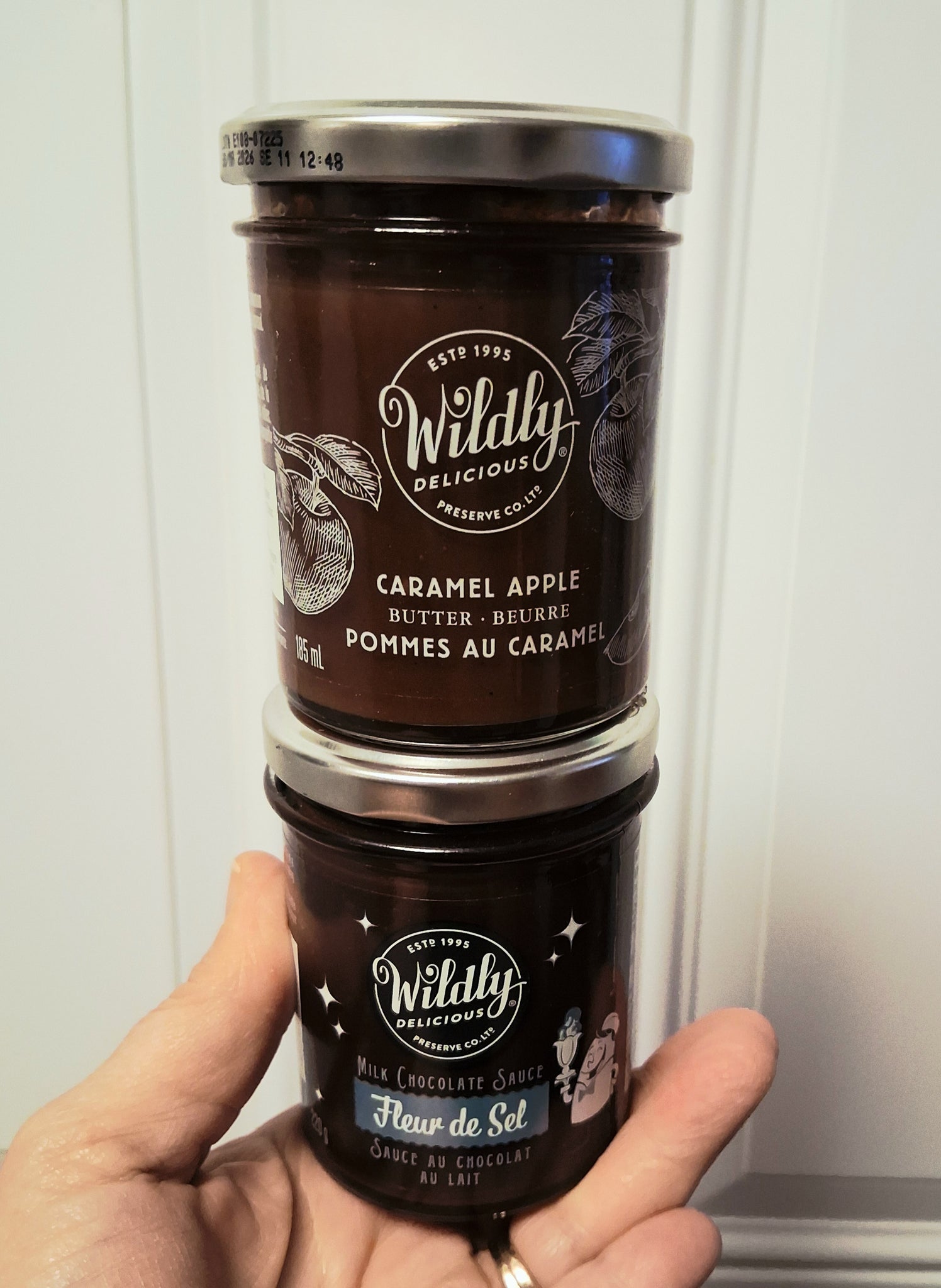 Wildly Delicious Caramel Apple Butter - great for dipping pretzels in, putting on toast or on ice cream. Wildly Delicious Fleur de Sel Milk Chocolate Sauce - for dipping or topping desserts with. (Butter Tart Caramel Sauce is now sold out.)