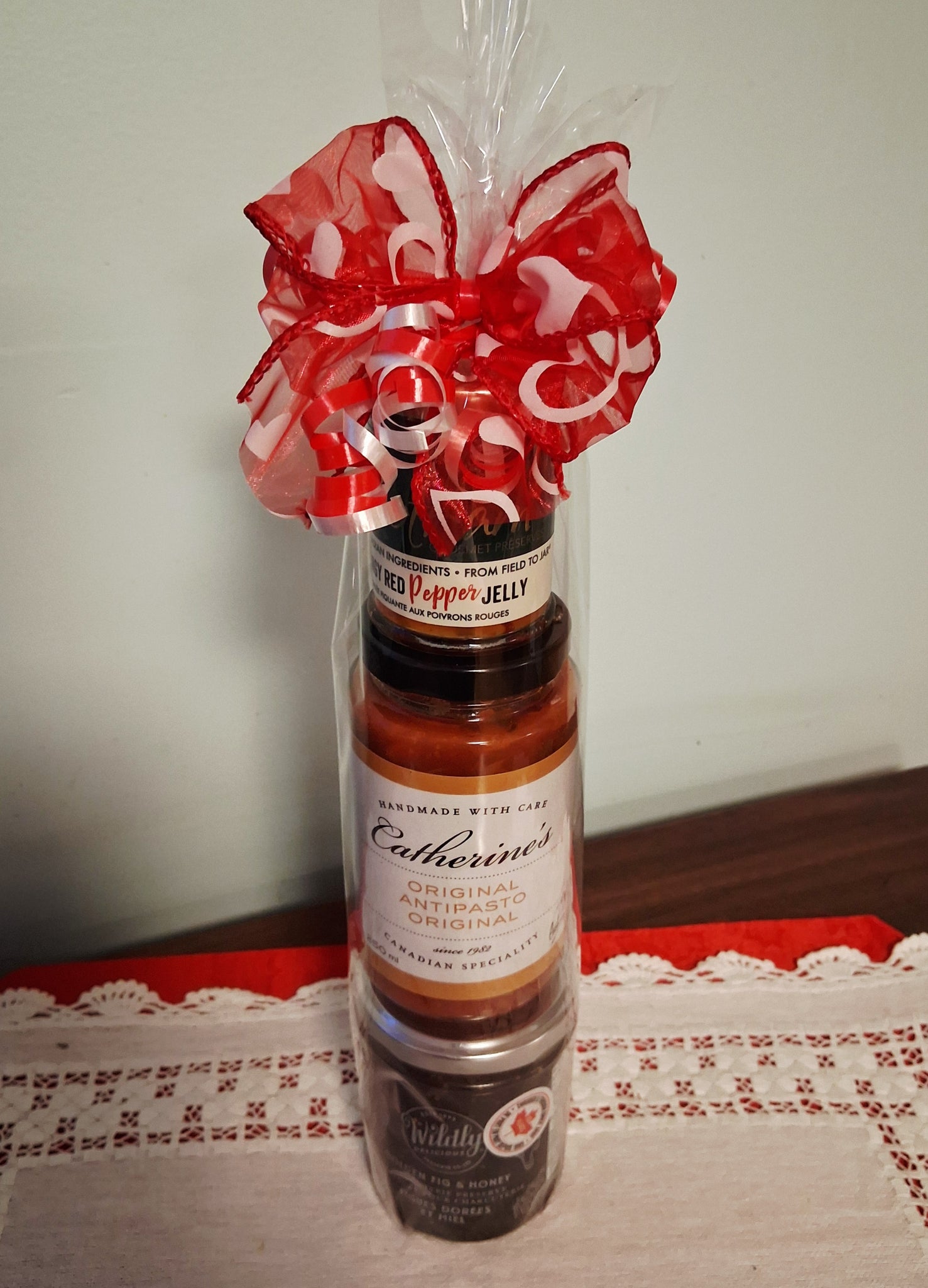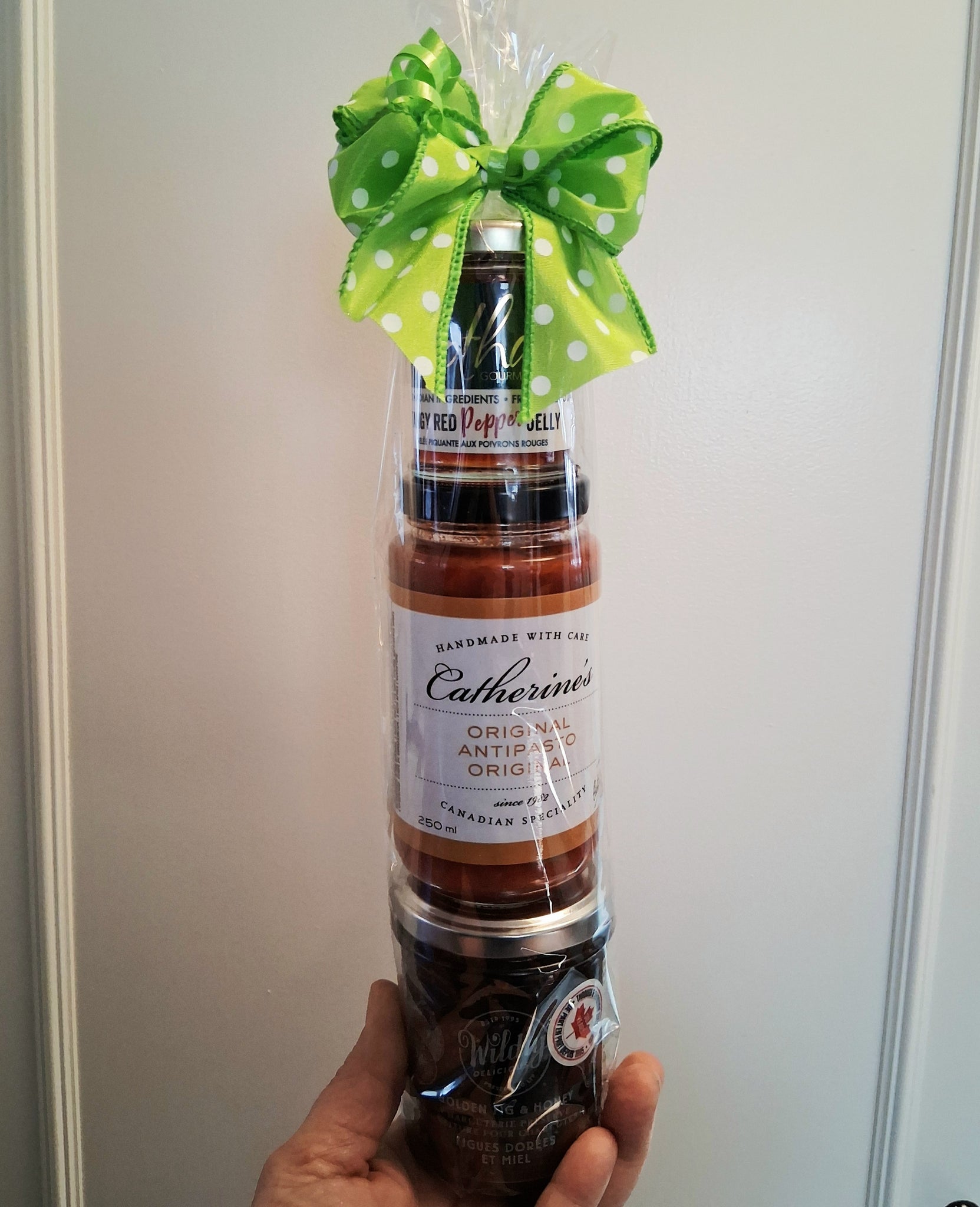 Rootham Red Pepper Jelly, Wildly Delicious Caramelized Onion & Maple Confit (amazing!), and Catherine's Antipasto (no tuna). * We are sold out of Rootham Antipasto and are now using Catherine's.
